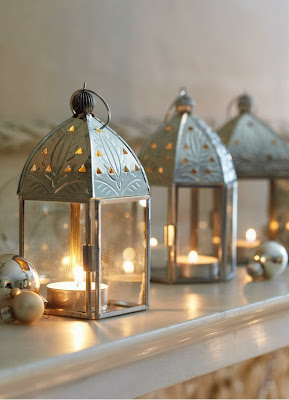 Very pretty. I love the lanterns on the mantel!