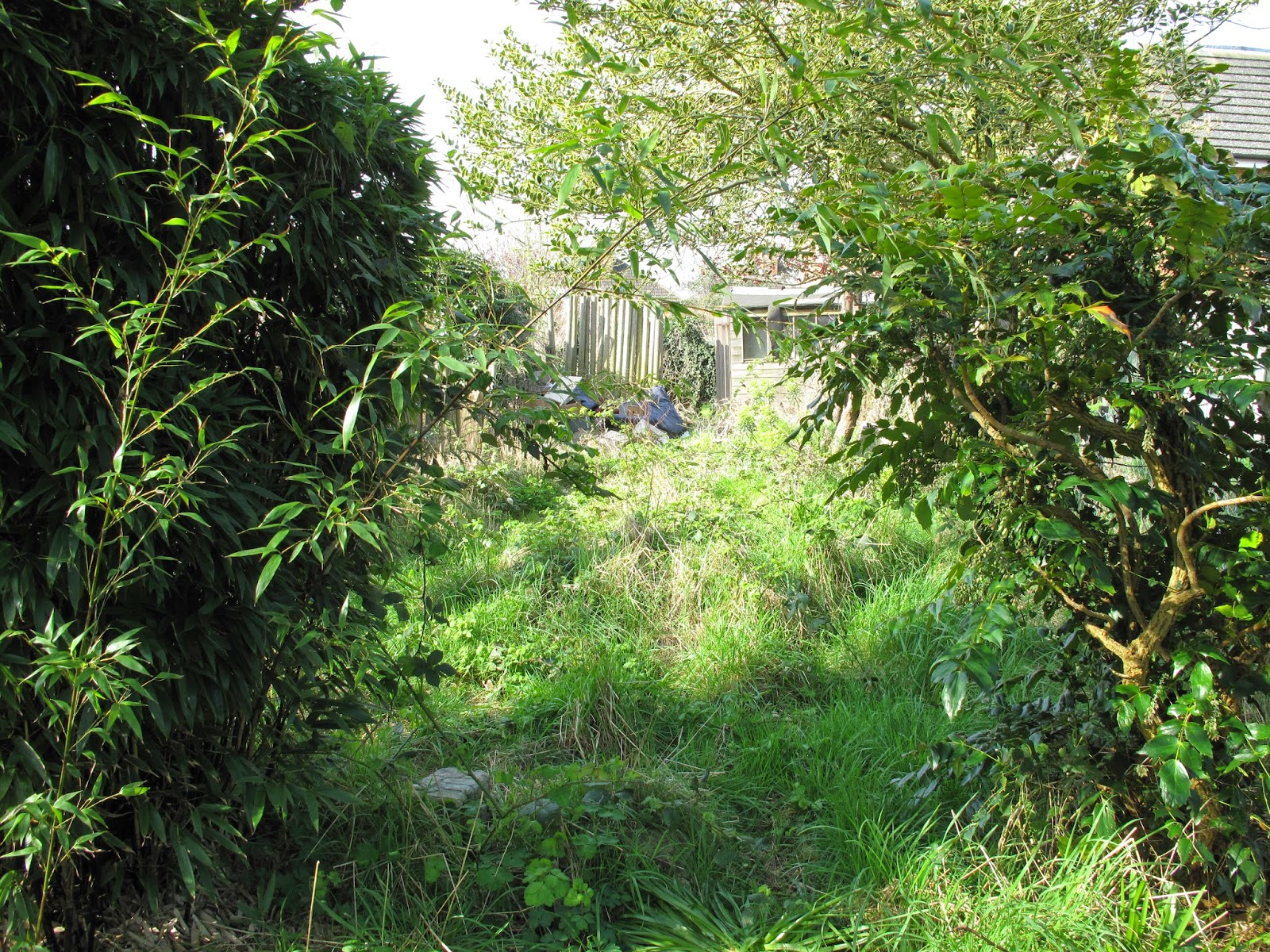 Before Photo of the bottom of our Garden & the mini Bluebell Meadow the day we moved in and our shed after it’s makeover.