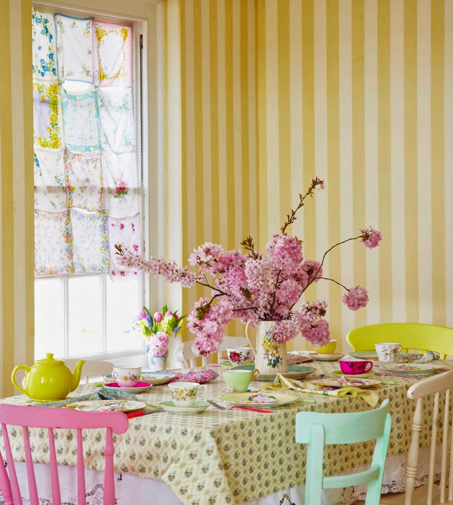 Homebase has some great new pretty pastel items instore and online this season. I’m loving their Dining Tables & Chairs especially the Pastel Coloured Kentucky Dining Chairs which come in pretty pink, mellow yellow, powder blue, mint green and white and would create a perfect pastel mix and match feel around your table. Above I used the Arthouse Linen Stripe wallpaper in Yellow and accessorised the space with my vintage hankies, tablecloths and china. Homebase also has a great selection of pastel tableware accessories including these Pale pink mugs, Pretty Cake Tins, and this cute floral glass vase which would be perfect for arranging Spring blooms in. You can also buy your own Cherry Blossom tree in time to pick a few blossom sprigs to adorn your table. What are you most looking forward to this Spring?