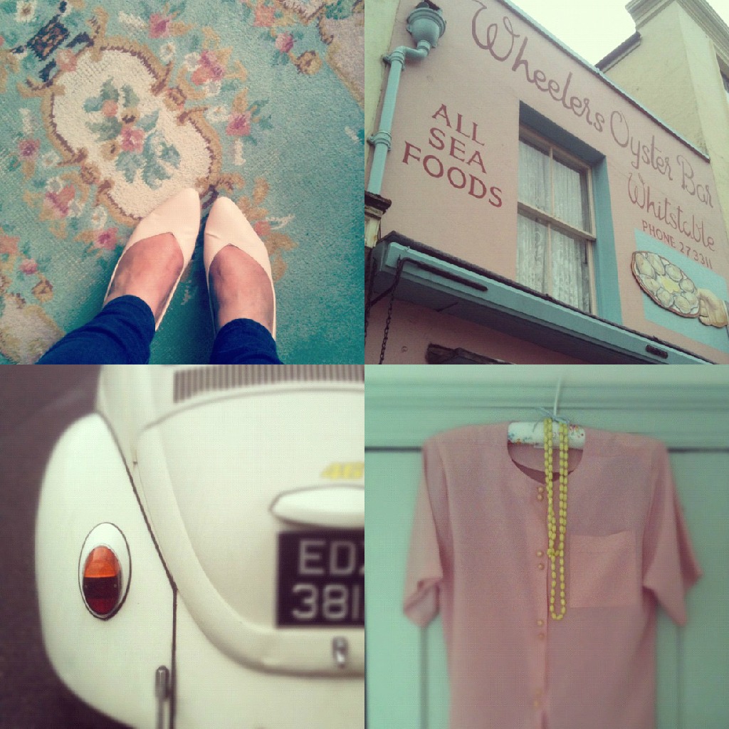 Since the trip to Holland where I started work on my next book, I have been working on it further in the UK with lovely photographer Catherine Gratwicke. We spent a very sunny day this week in North London shooting a very pretty home and then headed off to Whitstable – I arrived an afternoon earlier so I could have a browse around Whitstable (In the drizzle!)and so happy I did as I found these fab new pinky nude shoes, blouse and lemon beads in a charity shop I also took a few iphone snaps of some of the pretty things I spotted including the outside of Wheelers (Whitstable’s Famous Fish Restaurant) and this cute white VW Beetle. We stayed a The Linen Shed a fabulous B&B where we were looked after so well and the Breakfast was yummy and then yesterday the shoot went well and we got more gorgeous pics for the book – can’t wait to share all with you soon!