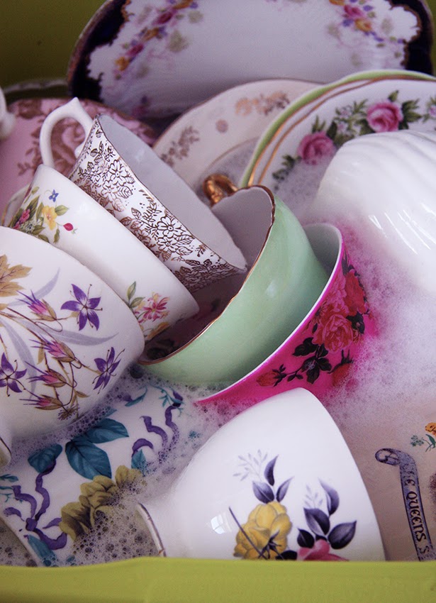 Ah now those are dishes I wouldn't mind washing up! There's nothing quite like beautiful, dainty, mismatched tea cups. Just lovely!