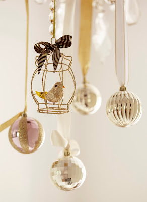 | I esspically love the bird cage decoration, the gold glitter roses, sprigs of mistletoe and the white Christmas tree candle. Also how lovely is the Tesco Christmas Advert this year ? |